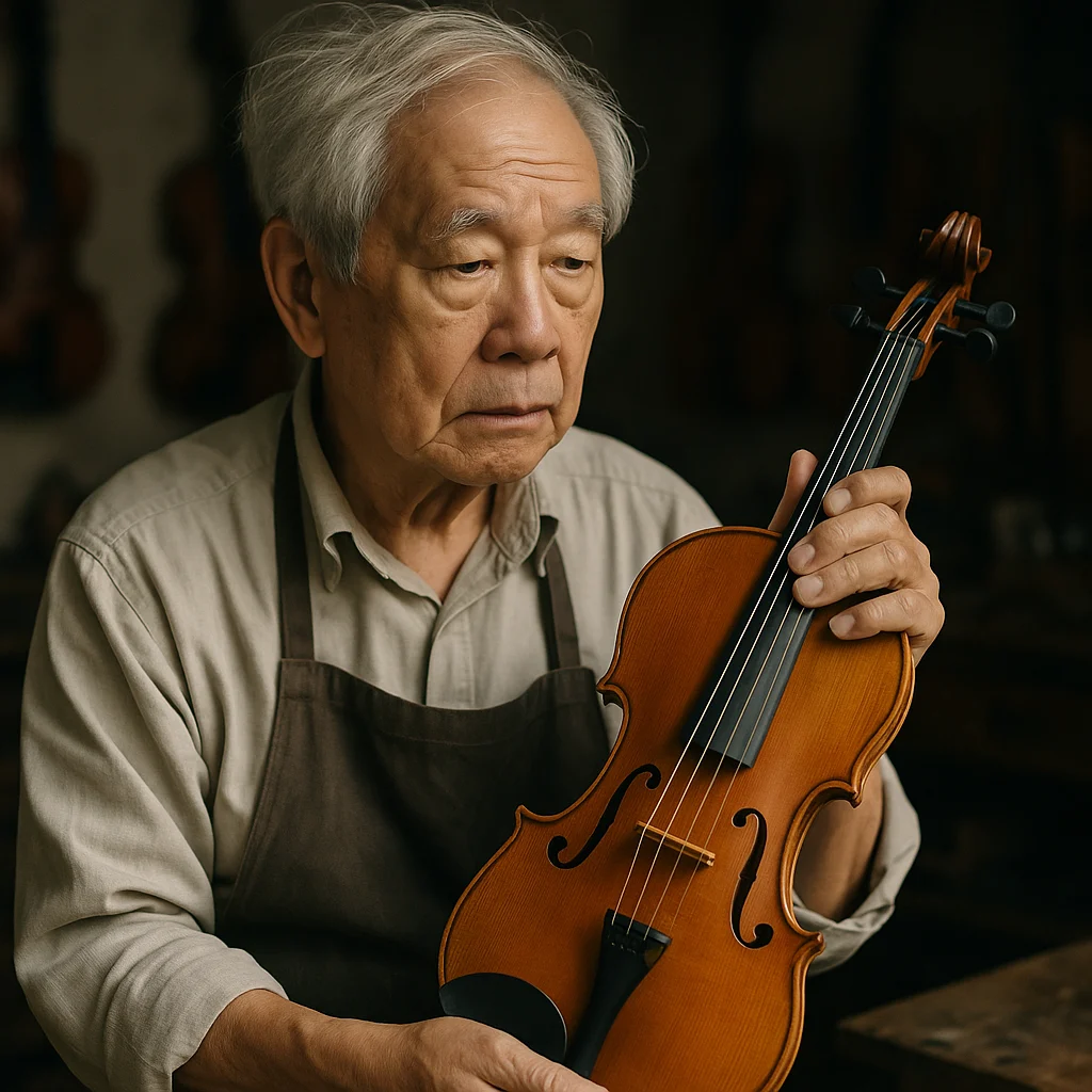 Born in 1935 in Kudus, Indonesia, Sie pursued higher education in theoretical physics at Jilin University in China. Following graduation, he worked as a researcher at China’s North Eastern Institute of Physics, focusing his studies on quantum physics and acoustic physics. His interest in violin making was sparked when he crafted a 1/8-size violin for his seven-year-old daughter, which was noted for its remarkable acoustical quality during her music examination.
